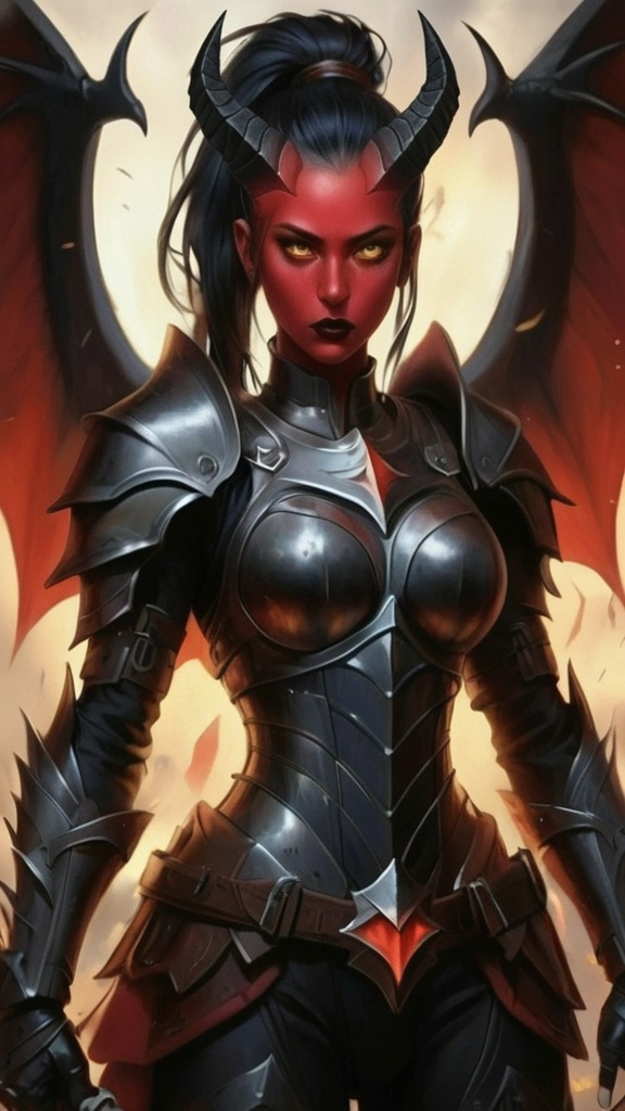 Heaven was born into royalty, demonic royalty that is. She's the daughter of demon-lord known as the Cinder Queen. As a girl, Heaven was kept within her Abyssal layer, an immense desert made of hot choking cinders. After escaping with help from an unknown source, she wandered the material plane looking for a way to get revenge on her mother. Eventually, the God King, Atam Zayar, began his Golden Resurgence and after finding salvation in Akila, Heaven took up arms against him. She was key in the final battle of Azir, being a physical powerhouse capable of going one on one with Atam. After defeating the usurper, Heaven returned to her home Abyssal realm to rule as a demon-lord. After years of serving as royalty, she had a child with a powerful, beautiful, unknown man. Her child was named Apolonia and Heaven treated much the same her own mother treated her, she locked her daughter in the royal palace for all of her childhood. After Apolonia escaped and joined an adventuring party to fight against the newly formed Domiax, Heaven realized the error of her ways and assisted her daughter in the fight. Heaven would be killed in the final battle after rescuing her daughter with assistance from her soon to be daughter-in-law Ziantarra.