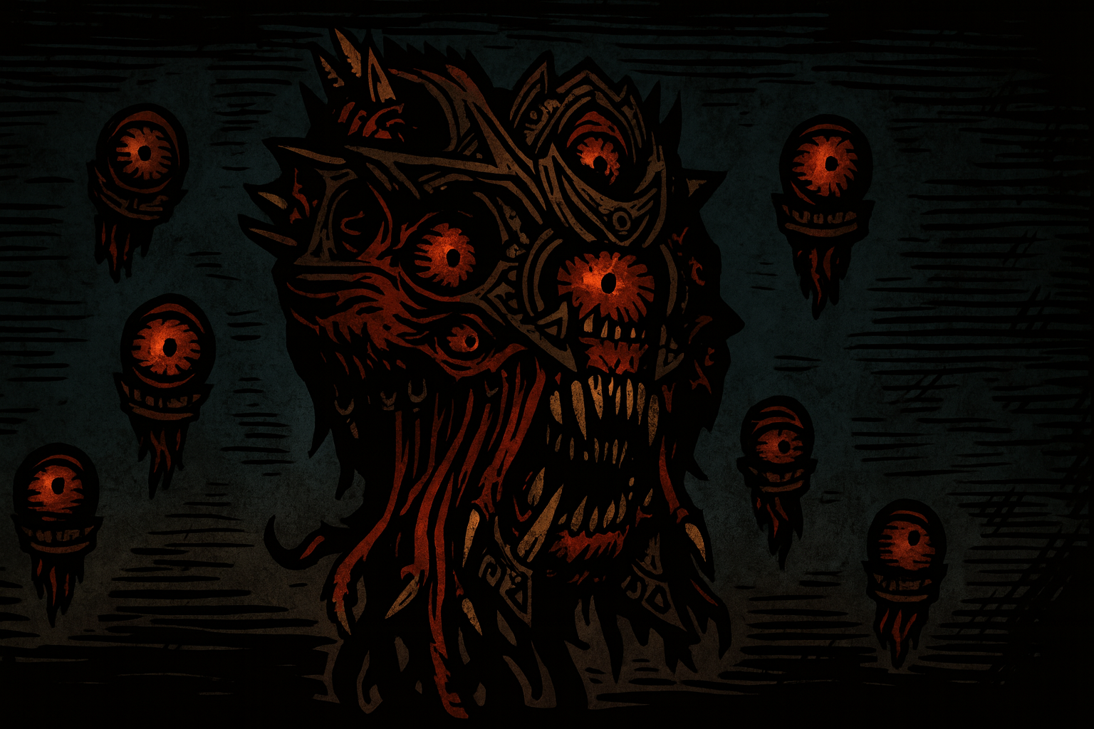Beneath the deck of the Demonwing, the Ruinlords came upon the heart of the ship itself. Six grotesque hearts pulsed ichor into the body of Straoth, the Overmind and former captain of the Demonwing, who rose from the altar as a mass of flesh and eyes. His voice thundered across the chamber, claiming the ship as his eternal domain and denouncing Wulfram as a thief. The Ruinlords fought desperately as the Heartlink fed Straoth strength. Eyes flared with psionic ruin, and ichor flooded the halls. Just as Straoth’s wrath threatened to overwhelm the heroes, Stu’s orb sparked to life. Wulfram’s face appeared upon its surface, his voice resonant and sharp. "Enough," he purred, a dagger wrapped in silk. "Overmind, you mistake yourself for a tyrant when you are but a player. This show is not yours to command. Defy me again, and I will tear your name from its script. And I will tear you along with it. For ratings." Straoth faltered, his many eyes quivering. At that instant, Tike Myson drove a final blow that crushed the creature into unconscious stillness. The Overmind collapsed, its tendrils limp, and the Heartlink went silent. Demonwing groaned, its course diverted once more into Cocytus.The Abyssal Dive