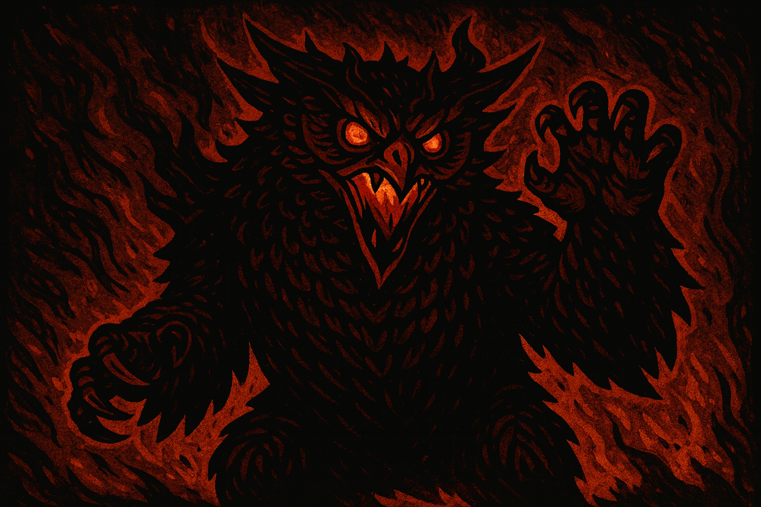 Deep within Cocytus, the frozen seventh layer of Hell, the frost giant warlord Hrimnir Frostbane stood between the Ruinlords and the prison dimension of Torvus. The Angel of Atrophy flexed a frozen hand out of the ice and engulfed Alfie, imprisoning the cleric in its titanic grip. Suddenly, the fallen spirit of Cassius Del Vago forced itself into the owlbear Potato, reshaping the beast into a towering infernal juggernaut powered by the Order of the Godclaw. Twenty-five feet tall, clad in writhing flame and shadow, the creature roared as the frost giant raised his axe in grim defiance. Hrimnir struck with chilling fury, each blow of his weapon cracking the stone beneath their feet and radiating such cold that the air itself crystallized.