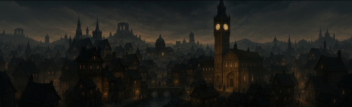 Despite its criminal undertones, Adis is a well-developed city with cobbled streets, sewer systems, public wells, and glowing lantern posts enchanted to burn through the night. Workshops, forges, and artisan houses operate alongside taverns and inns, many doubling as fronts for The Hat. A central clock tower marks the city square, with roads branching to all districts.