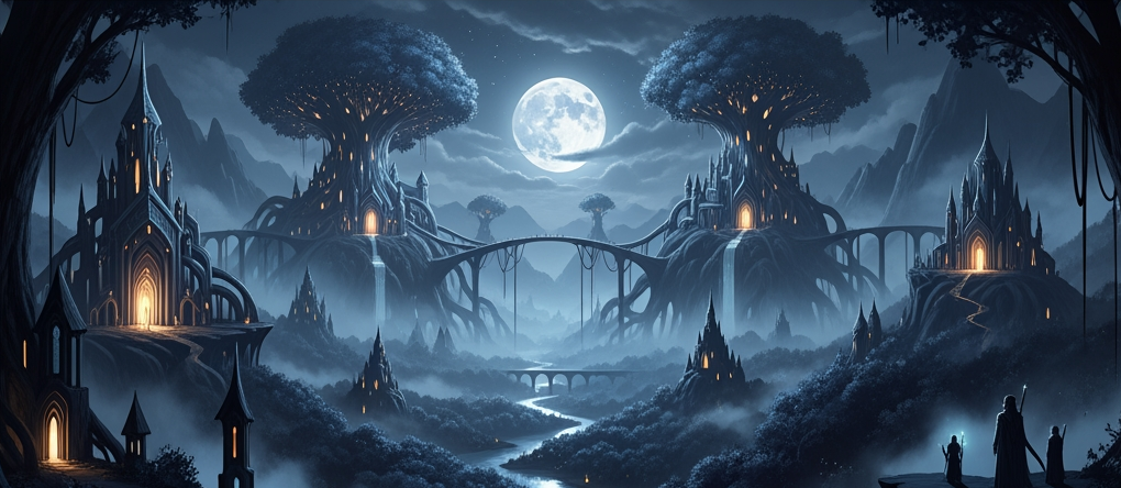This territory is defined by its thriving flora and fauna, with lush forests and fertile lands supporting not only agriculture but a strong cultural foundation of balance between nature and civilization. The elven cities are intertwined with their environment, designed to blend into the forests and mountains while upholding ancient traditions. This region's cities act as hubs of knowledge, spirituality, and connection to nature, often fostering a deep sense of pride in their cultural heritage. While most of the territory has fallen under the guide Krorone Goddess of Darkness there are some that shun away from the dark goddess and prefer a more nature based faith with Ilmos God of the Hunt and Nature.