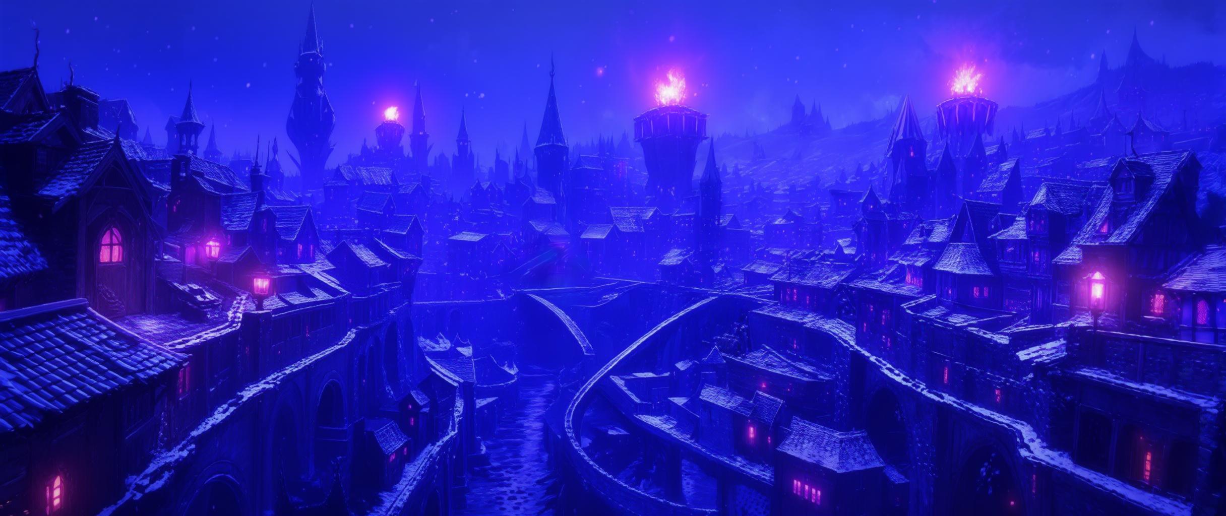 Porthca’s architecture is rugged and beautiful—homes are built from dark stone quarried nearby, with iron-braced beams and wind-resistant design. Roofs are sloped and paneled with snow-slickened slate. Buildings are often adorned with spirals and glyphs honoring the Lantern King. Inside, most dwellings are filled with thick woolen blankets, carved wooden furniture, and old tapestries. Doors and shutters feature whimsical asymmetry, a nod to the god of trickery. No two homes are exactly alike, as design is often influenced by fey dreams.