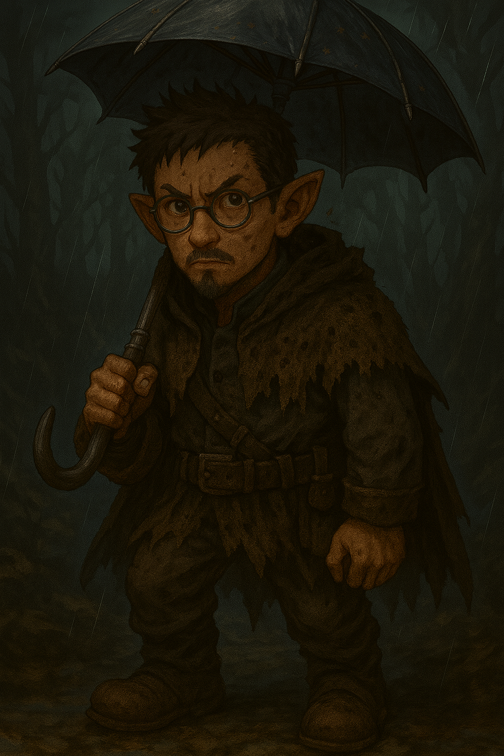 His most infamous failure was his encounter with an Archfey when he responded to a Fey joke with a detailed critique rather than laughter. The resulting curse ruined his academic reputation and forced his departure from Galca's orderly halls. Since then, he has endured countless public embarrassments: getting lost while giving confident directions, appearing far tougher than he is due to constant grime, and being blamed for mechanical mishaps simply because he was nearby. Each incident chipped away at his former arrogance.