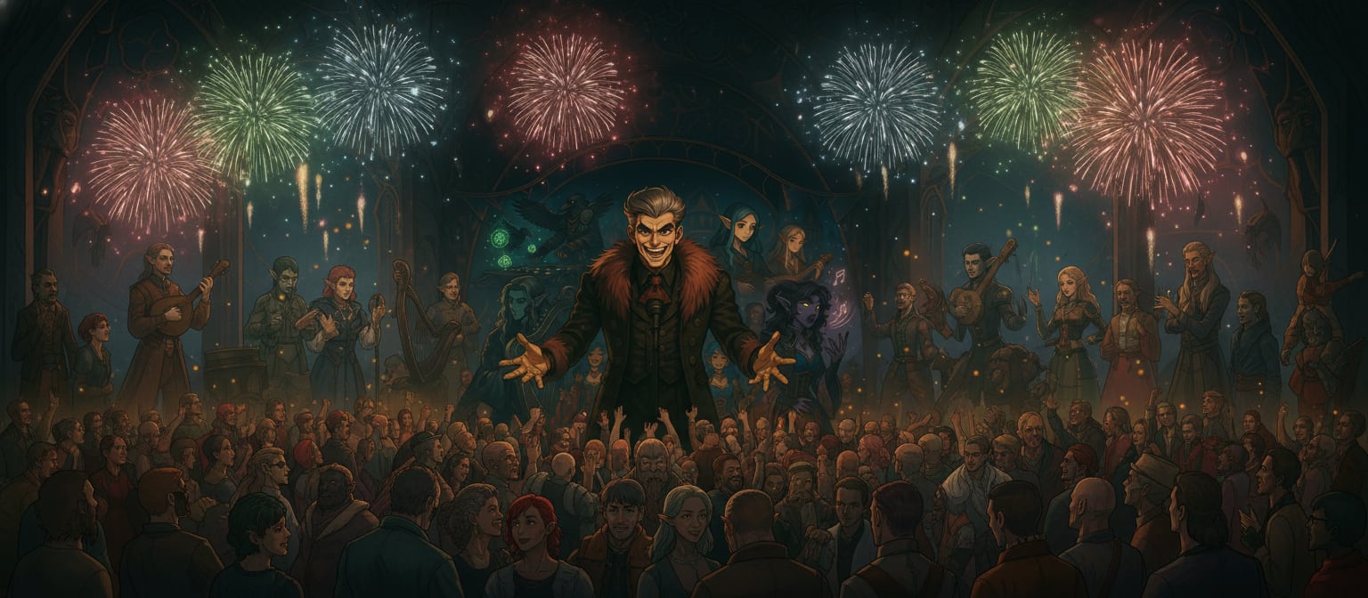 Entering the festivities of the The Glimmering Revel, the group found themselves almost instantly attracted to the performance of Aritay and Echochime. During this time, Claude Minie found himself alone in the inn that he had paid for the previous night and was wandering around the town. After the performance, Boots aka Ghost found herself sneaking into her dressing room, noticing another woman, a mummified cat, and a young child. Ghost handed over the book that she had stolen from Nadena and rewarded her with some items. While all this was going on, the group was approached by Claude who was following the coin, almost like a glowing beacon. Becoming warmer to the touch as he neared the coin in Amahri Rhea. Sitting down for drinks, Claude questioned the group about the experiences that they had in Cerulea Tower and the group found that their experiences had been completely different. It was during this time that the call was made for the fighters to come to the colosseum for the grand tournament. Rheese immediately left and the group eventually followed him. While registering, he ran across Rook, his previous mentor from The Wayfarer's Guild that was working security along with another from his previous group. After registering, Rheese involved himself in some degenerate gambling, winning "Big Money" until the construct that he had been winning against ran out and had to return back to a bank to refill on coin. Ghost at this time also registered for the fight. So, as the battle royale ensued, Annghorhast watched from the stadium, Rheese and Ghost fought valiantly, but in the end could not beat the "skill crusher" and were rushed off to the healing chambers. Meanwhile during this time, Ray and Claude decided to investigate the construct, finding a broken one and awaited to see what would happen.