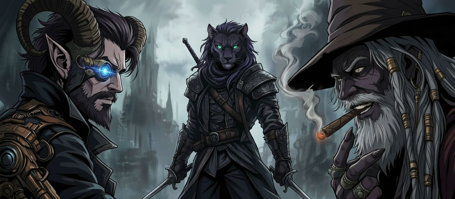 Last we left off, the group stood before the remains of the city of Adheath where Dart flew ahead to check out the current landscape where he came upon two people sitting in chairs on the outskirts of the city. Landing, he began talking to them and a Tiefling with a metal arm who went by the name of Doctor Gaterth Voss advised them that it wasn't safe in the city and that they could lead them through for a price. Once the group caught up there was some additional dialogue; however, they soon came to realize that a trap had been sprung. A mighty battle ensued; however, the bandits of the leader of the Technocratic Syndicate Talon Thorne revealed themselves to the group and led an onslaught, taking them out one by one. As darkness settled on the group, they were awakened by the sounds of talking and the smells of a cigar wafting around a small room. The group had been placed in a jail cell with Dart on a table being prepped to experiment on and two guards and a darker compexioned man with a point hat on playing cards at a table were watching the group as they learned Talon had to step away.