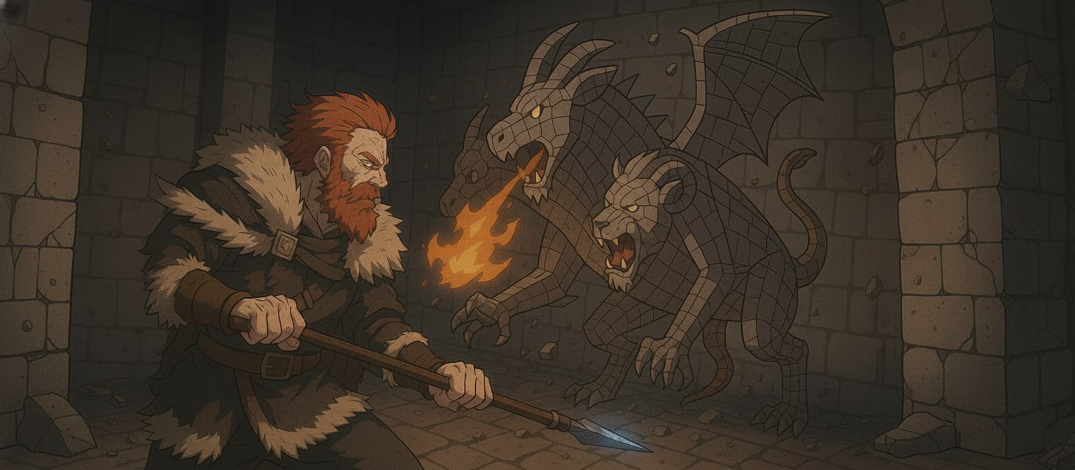 Entering into the underbelly of the church, they were able to almost immediately find the location of the captive child. With surprise attacks and spider stealth from Shrumbo they were able to get the drop on them and dispatch of the guards easily. Abnor and Balazar quickly exited to return the child and his mother came running out and grasped her missing son in tears. She looks towards the two and thank them; as they survey the area and turn back, she was already moving towards the end of two preparing to exit into the forest. Making their way back to the rest of the party the encountered the priest next going through documents and the books and laying out even further plans for the town. He was dispatched almost instantly, but could do nothing but laugh in their face and spit in their direction as he knew the end of the story and they would all cower before his dark goddess. After finding all of this, Shroombo was sent back out to find Joyce who he responded with only the bare necessities of what was going on. She entered the church behind him and closed the door and covered it for them and made her way back to her shop. Upon entering the final room, they came face to face with a single cultist and a person dressed in purple robes and a head piece that was shaped with four out of the five (black missing) chromatic dragons. "You're too late..." escapes his lips with a smirk and he steps into a portal and vanishes. The cultist brings forth a tile chimera to life from a mosaic that had been painted on the wall and the party battled for their survival. After a long, hard fought battle the party was victorious and the cultist and hundreds of small pieces of tile lay scattered across the room with nothing more than a few pamphlets and a mystical orb on a stand remaining.