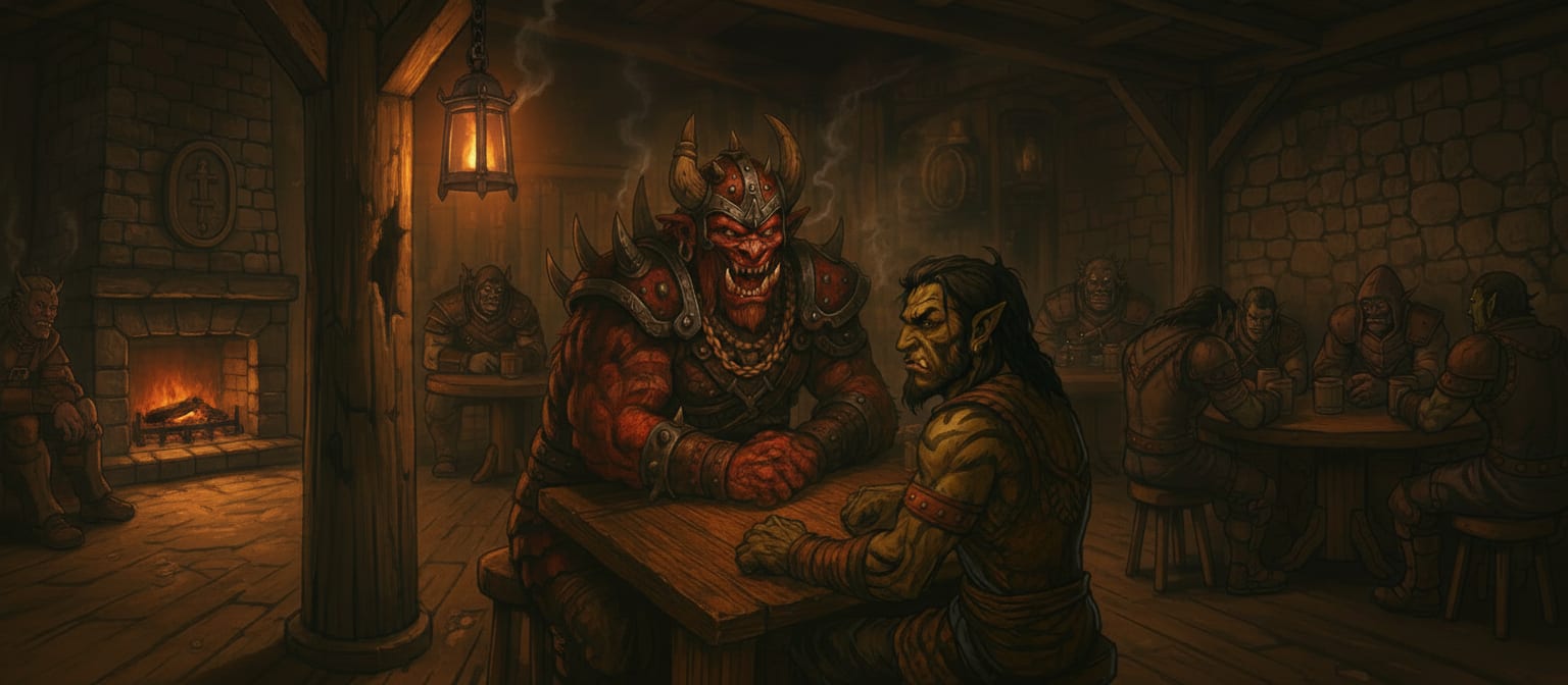 The next morning Abnor explained that they were about to have to pay reparations for the goblin village when in the middle a large, fiendish looking orc burst through the door. After introducing himself Bojak Bloodletter commended the group for the destruction and death they caused, but also explained to them that they took down an important trading post as they marched to the temple. He also introduced his daughter Amanda and Gomm :) who explained everything to them as he'd ran into some of the scouting parties while running away from the goblin village fight. Abnor requested that the ones in the temple be spared and left to their own accord. Bajok agreed...but did "offer" them a job since they were so good at taking down towns to go take down a small village of dwarves that had moved in and named Gutithorp. Smaller bands had attempted, but the dwarves had fought them off and there was no time to deal with them when going for full conquest. Bajok taunted Balazar, but then offered him a ring when he wouldn't fight that was then bound by an incantation so he'd know where Balazar is and if he took it off he'd get a surprise. With more taunting from Gomm, he left with Bajok leaving Amanda with the group to head to Gutithorp to earn their freedom. Shroombo did send a bird with a message to the ones at the temple to evacuate immediately as there was a large war party headed towards them.