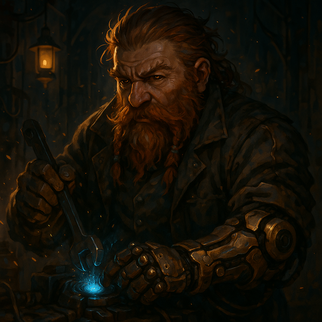 Torren Wicks was born in Adheath, once one of Technara’s shining hubs of progress — a city powered by the Abericlase network, lit by stormlight cores, and humming with life. He grew up in a workshop tucked between the turbine towers and the lower conduits, where his parents designed power relays and crafted the enchanted tools that kept the city’s arcane grids alive.