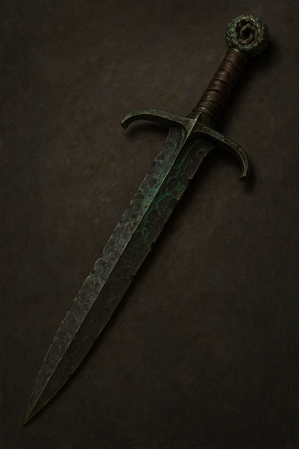 Forged in the Rotting Crucible of the 7th Hell, Vermis Ruina carries the will of Lord Vrothak — a hunger to see all things crumble into dust. The blackened blade is pitted and veined with a shifting green patina that seems to crawl beneath its surface. When drawn, the air grows heavy with the scent of decay, and faint skittering whispers at the edge of hearing.