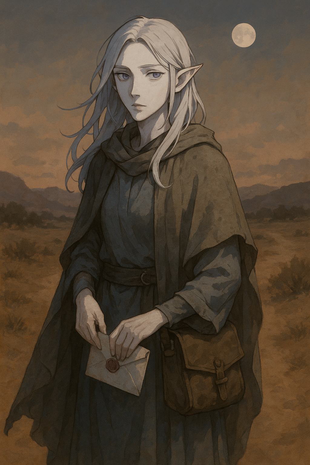 She crossed through Nocturnis, through the scarred lands that still smelled of magic and war, and eventually reached the desert edges near Hajul , where she found a half-orc traveler trying to organize stranded couriers into something that resembled order.