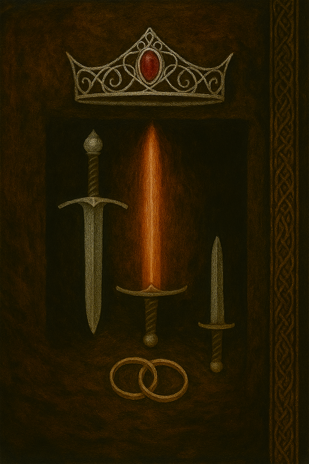 The crown is placed upon the brow of the young Queen. She feels the barrier fall to her, and her life begins to be taken at a slow but steady pace. From that day until her last, she bears the weight of Grandel Isle.