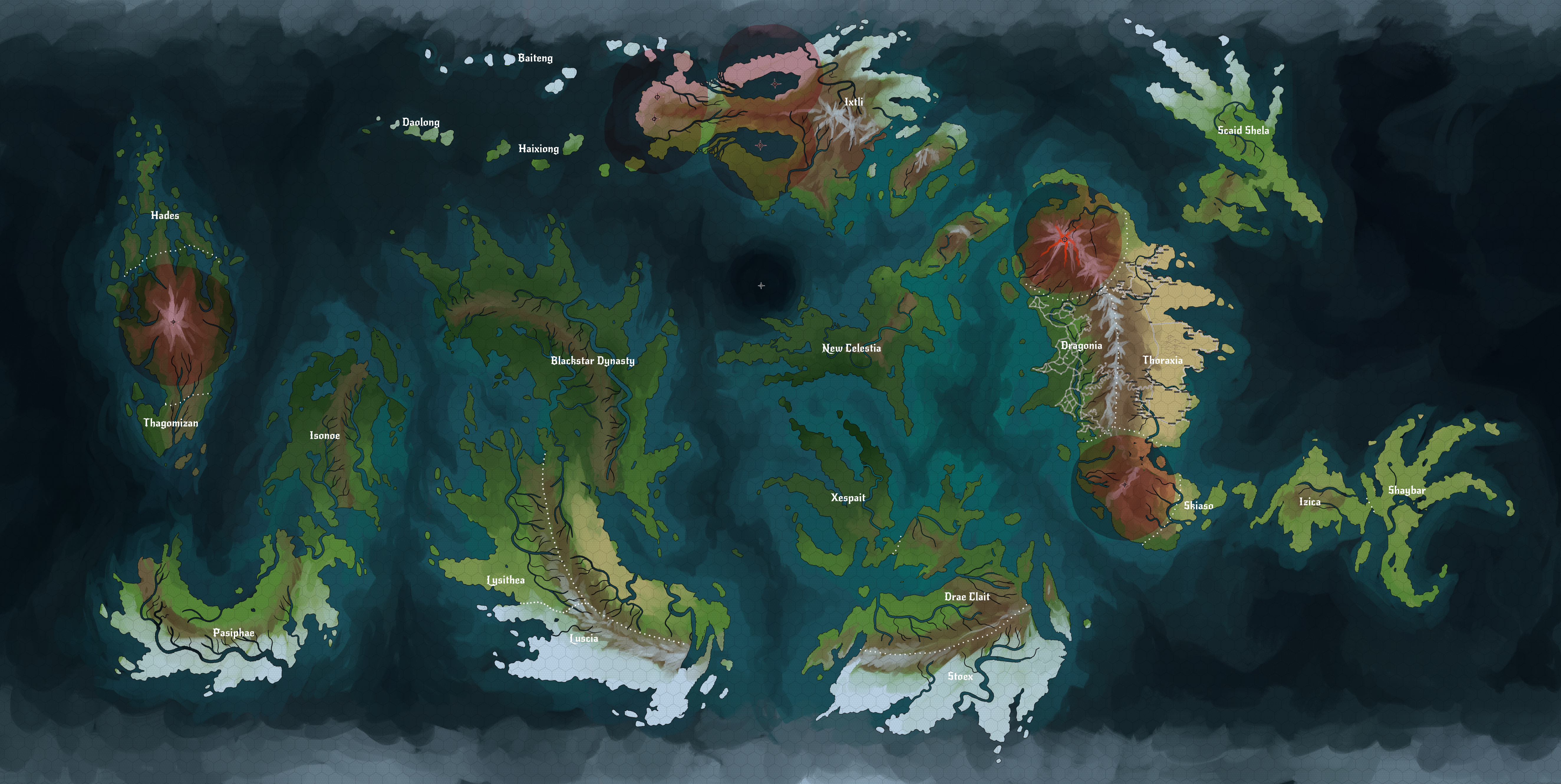 Currently, I am working on a new world map for the Great Wyrm. It'll be bigger! Better! 25,000 pixels wide! More accurate climate biomes! If only pixels could be counted as words! Oh Well!