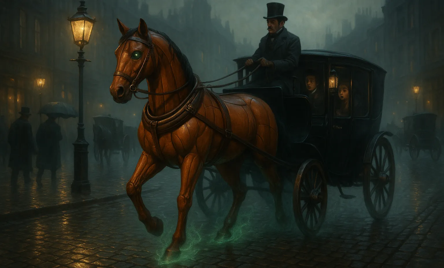 When James Brooke first demonstrated the practical applications of Embodiment, he could hardly have imagined the radical change it would bring to the world. The ability to craft bodies and animate them with captured spirits fueled a profound transformation, as flesh and blood labor was replaced with contrivances that did not need to eat, sleep, or receive medical care. The most visible sign of this change was the introduction of the Construct Horse.