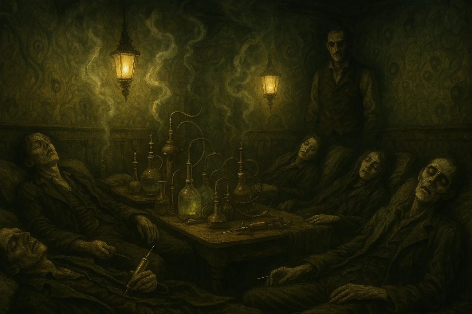 Some of the more paranoid agents of the Special Branch have even come to suspect that certain persons are deliberately adulterating the drugs found in the dens, with the intention of opening the dreamers' minds to entities from Beyond. These same anxious souls claim they do not much fear the ones who emerge as monsters or madmen - it is those who rise quietly, compose themselves, and disappear into the crowd who keep them awake at night.