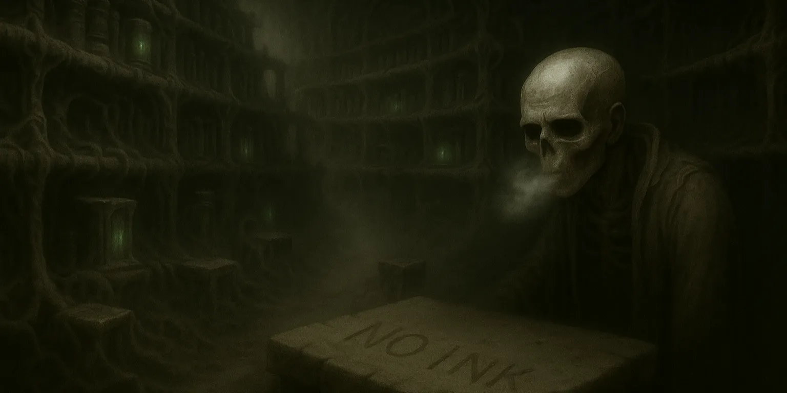 It is forbidden to speak in their presence. The books can seize upon the echoes of a living voice and warp them into profane spells. Ink must not be carried into the Barrows, nor any tool of writing, for these are weapons the books may wield - forming crawling passages that infest the skin, inscribing themselves into flesh, and seizing the soul. Few are permitted to enter the Barrows' depths, lest the tomes prey upon their ignorance and escape into the wider world. The bindings laid upon them by the Barrow-Wardens and their god are potent, but never absolute.
