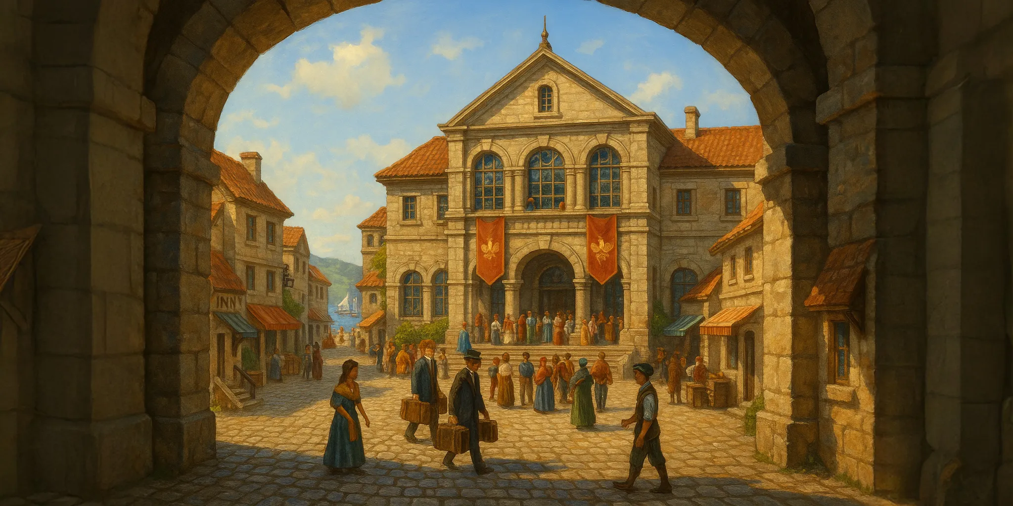 The Wayfarer's Guild established its headquarters in the capital, Piffling Vale, and quickly began arranging similar agreements across the world. Many small nations accepted, with their larger and better-protected neighbors pledging to assure their safety and independence. Today, Wayfarer States like Piffling serve as multinational transportation hubs. The Guild's mages transport customers from one unwarded location to another, after which travelers use local means to cross borders and reach their final destinations.