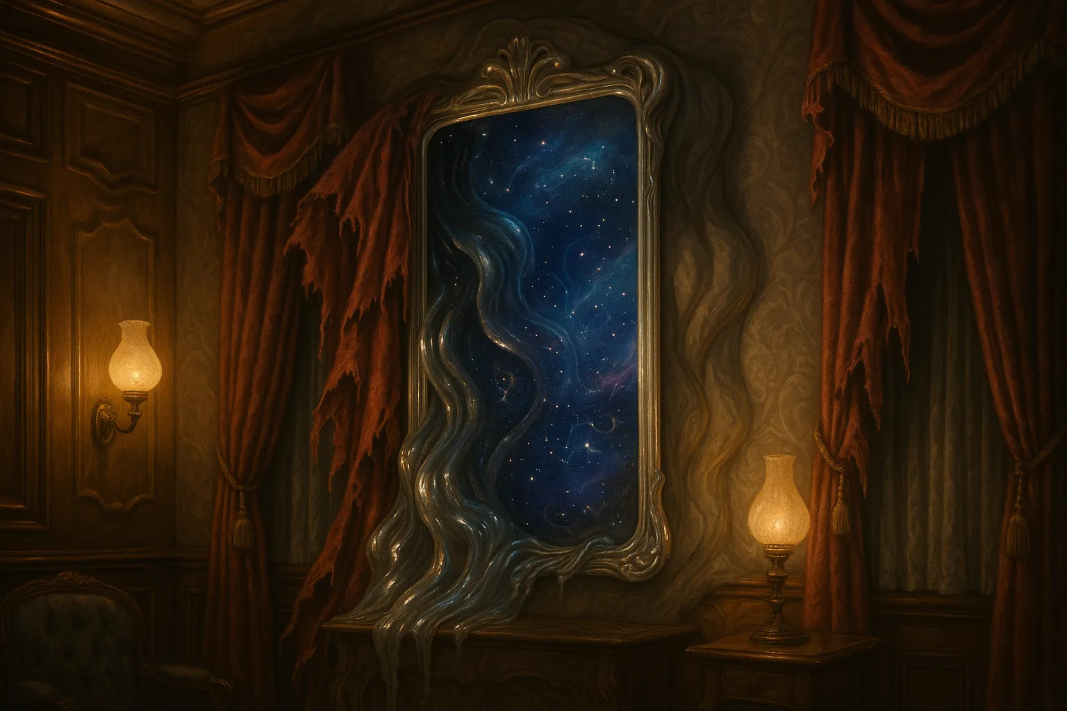 Before the discovery of universal magic and the subsequent growth of arcane development, the mirror problem was interesting to those who practiced magic but of little concern to the rest of the world. However, in the modern day, Magic can be found everywhere, and mirrors are increasingly becoming a public safety hazard. This was a slowly developing issue in the centuries before the Dragon Wars, but like many things, the eldritch energies the Cult of the Leviathan unleashed on the world have had consequences, and the problem with mirrors has accelerated in the years since the war ended. Many institutions, such as the Church of Albion and The Ministry of Correspondence, simply do not permit any mirrors on the premises at all. But outside of these organizations, mirrors are ubiquitous, and many stories have begun to arise of problems emerging from them as they are accidentally exposed to Magic. Part of the challenge in tackling the issue is its inconsistency. A young lady may apply alchemical beautifiers a hundred times before her mirror with no ill effect, only to find that on the hundred and first time a bloody face leers at her from behind the glass before it shatters into hundreds of lethal shards. Sometimes the mirrors show no reflection at all, or they begin to grow beyond their frames, covering the walls in sharp-edged living glass. In most houses, the mirrors are kept covered by heavy velvet drapes, drawn back only long enough to glimpse one's reflection, but even with such precautions, people are sometimes caught by their reflections and will spend hours gazing into them, only waking when someone covers the mirror again, unable to explain what trapped them so.