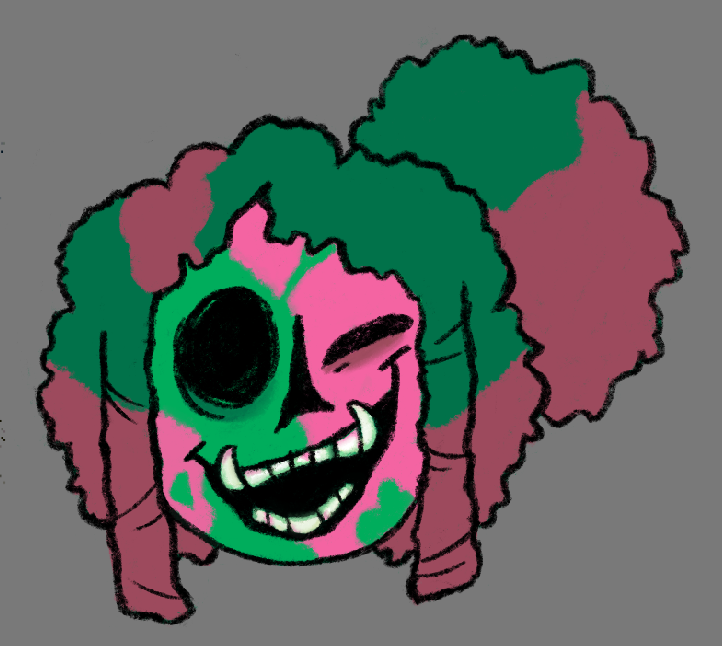 Blitz's top set of canines resemble tusks, although way smaller. Like Rush, her face also bares resemblance to a skull.