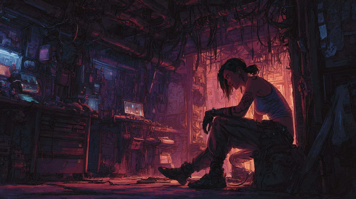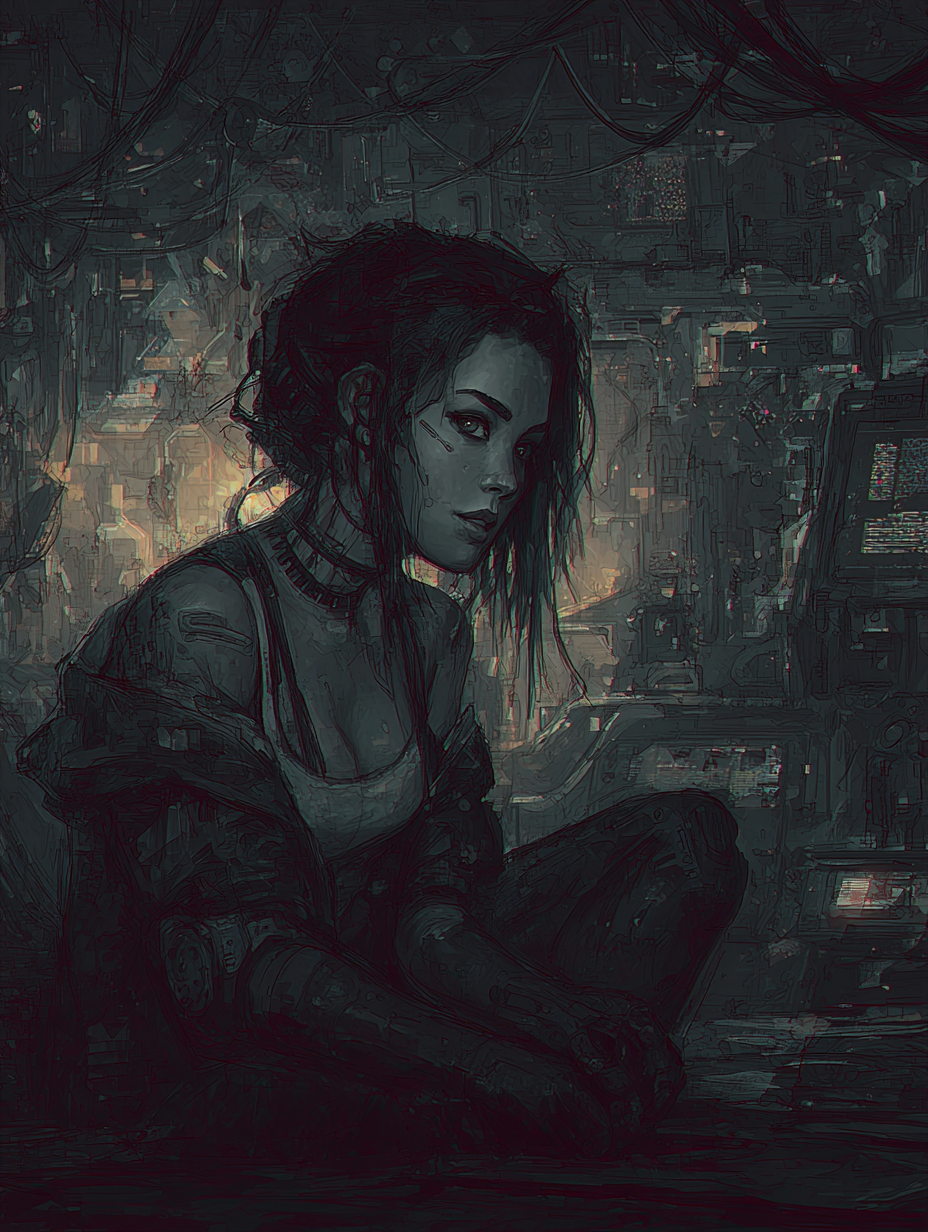 The rain was a relentless drum against the cracked pavement, becoming white noise as it struck the walls of the East End buildings. Neon glowed behind veils of cascading water, casting flickering reflections on puddles that covered the narrow, debris-strewn alley. The smell of oil, wet metal, and something chemical hung heavy in the air. Mara crouched behind a stack of battered crates, clutching her worn-out teddy bear close to her chest. Her small fingers trembled as she stared at the red splatter covering the fur of the animal in her hands. Her 10-year-old mind mimicked the storm around her, as it spun out, whirling with the questions she couldn't answer. Why had they come? Why had they taken everything? Why wouldn't daddy get up?It was a cold, stormy night in April, when Mara's parents were killed, in front of her. Born to Matteo and Luisa Delgadillo, her father was a prominent leader in the underground tech market during the Time of the Red. Her mother, Luisa had been a factory lineman for a corpo that produced high-end limb replacements during the 2020's. Together, they had opened a modest shop in Houston's lower East End. Operation Area: Mara primarily operates in the tunnels under Houston and salvage zones around the city, especially around the Flooded neighborhoods, Bayou waterways, and underground salvage markets. She’s often found near forgotten access points, abandoned infrastructure, or underground repair hubs.