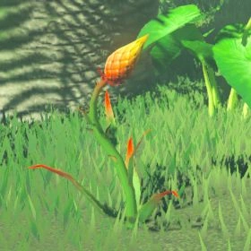 Mighty Thistles can be found growing in the Faron Grasslands and West Necluda. Many Mighty Thistles grow around the Great Fairy Fountain near the Tabantha Tower. Mighty Thistles can be used in cooking and can be roasted. Mighty Thistles can also be used to create Orange Dye.
