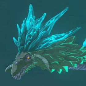 Naydra is one of three roaming Dragons in Hyrule Kingdom, the others being Dinraal and Farosh. While she cannot be defeated, she does not actively try to harm Travellers. However, if an adventurer gets too close, they will be frozen by the icy aura surrounding her body. Adventurers can prevent being frozen by wearing either a full Snowquill Set that has been enhanced twice by a Great Fairy, or Zant's Helmet. Naydra will drop different Materials if an adventurer shoots her with a Bow. Depending on what part of Naydra is hit, she will drop either a Shard of Naydra's Horn, Shard of Naydra's Fang, Naydra's Claw, or Naydra's Scale.