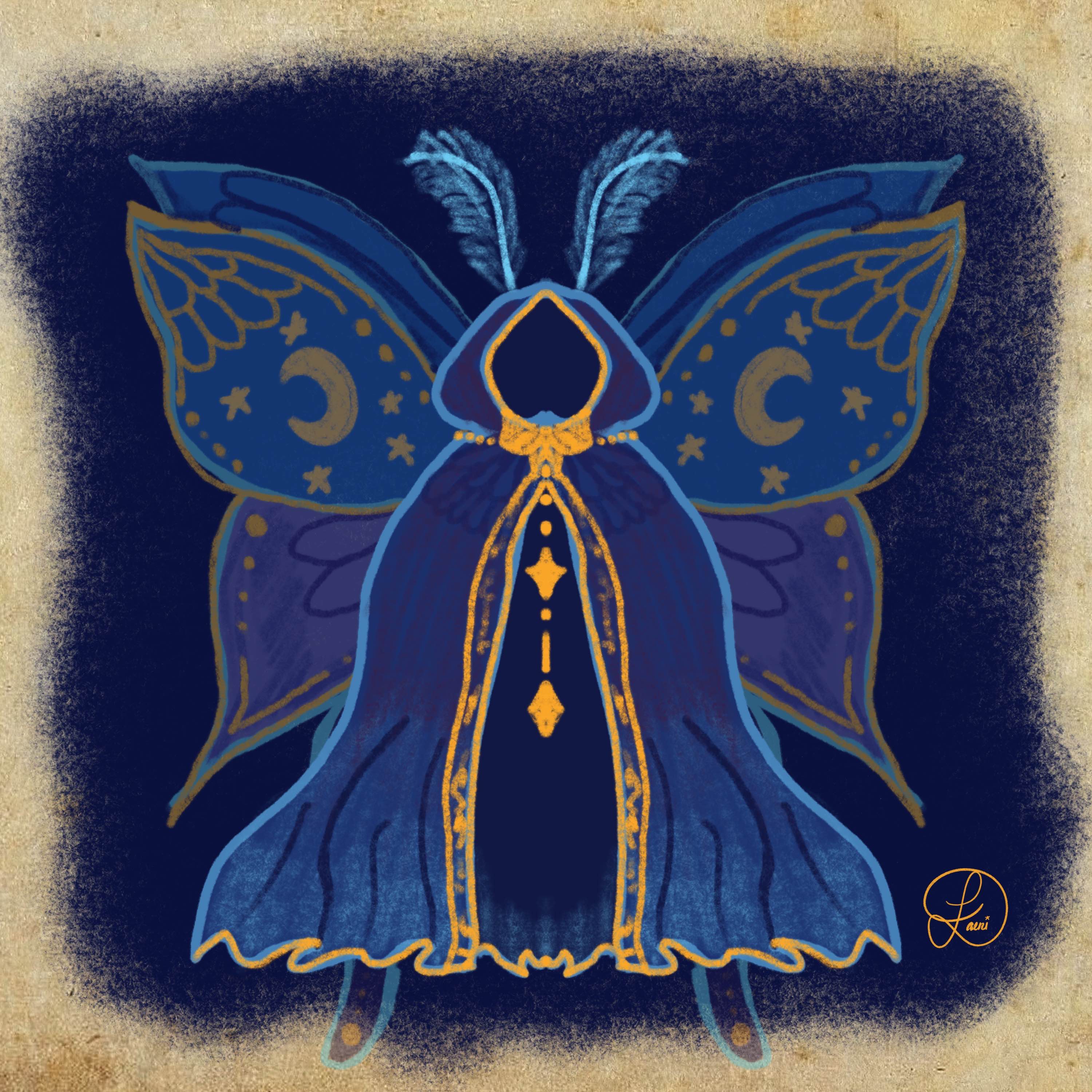 When dusk comes around, the cloak seems to come alive. From dusk to dawn, the cloak grants the wearer the ability to fly as spectral wings sprout from the back of the cloak. Another feature of the cloak is that it has the ability to let the wearer see any glamour and magicks that they Fae have left. You would also be able to see hidden Faeries and other Fae. Once every time you don the cloak, you may ask for guaidance from the Moth Queen of the Noctilune Court.