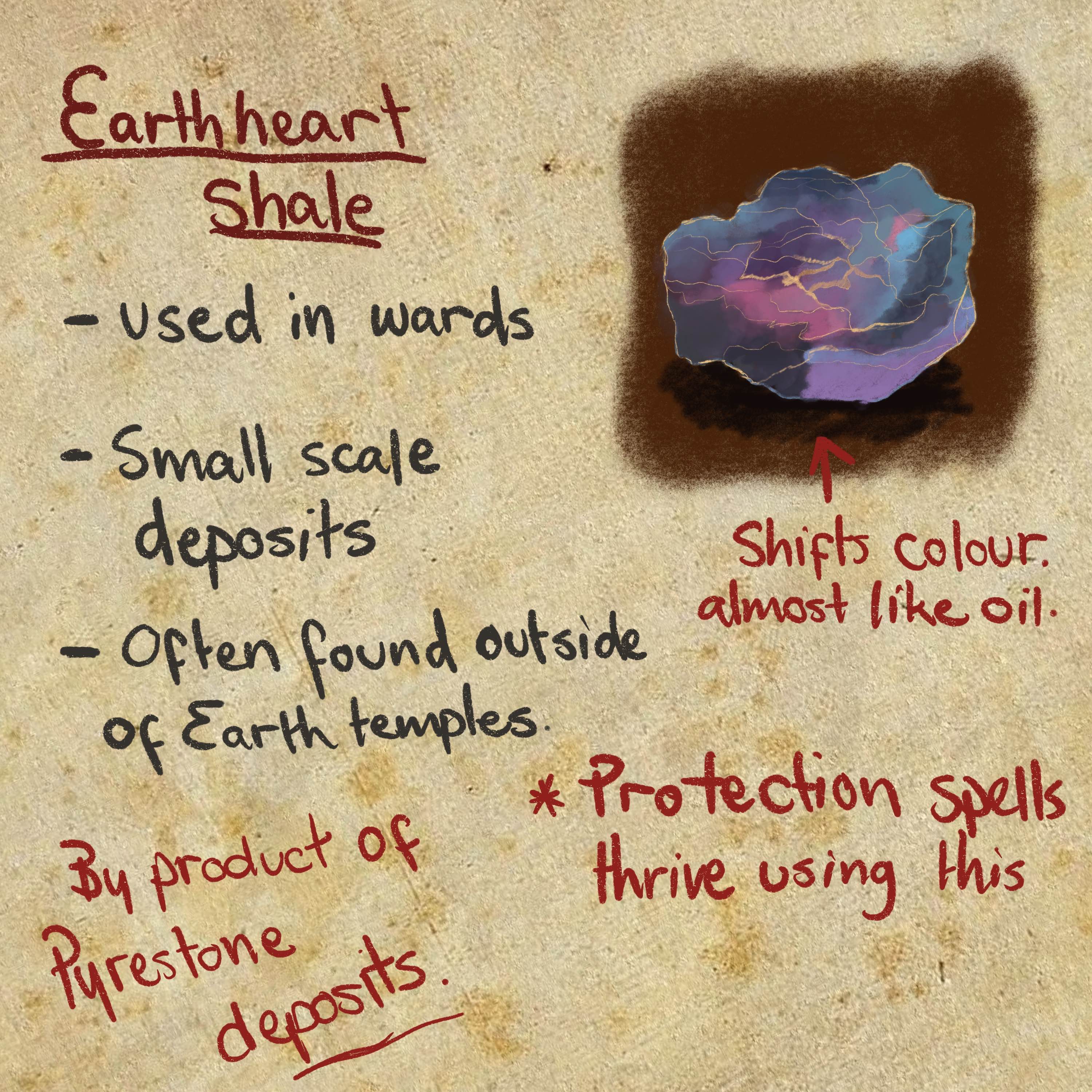 Powdered Earthheart Shale is perfect for protection spells and wards. When put into potions or spells you have to make sure you grind it in a mortar and pestle, otherwise it will not dissolve.