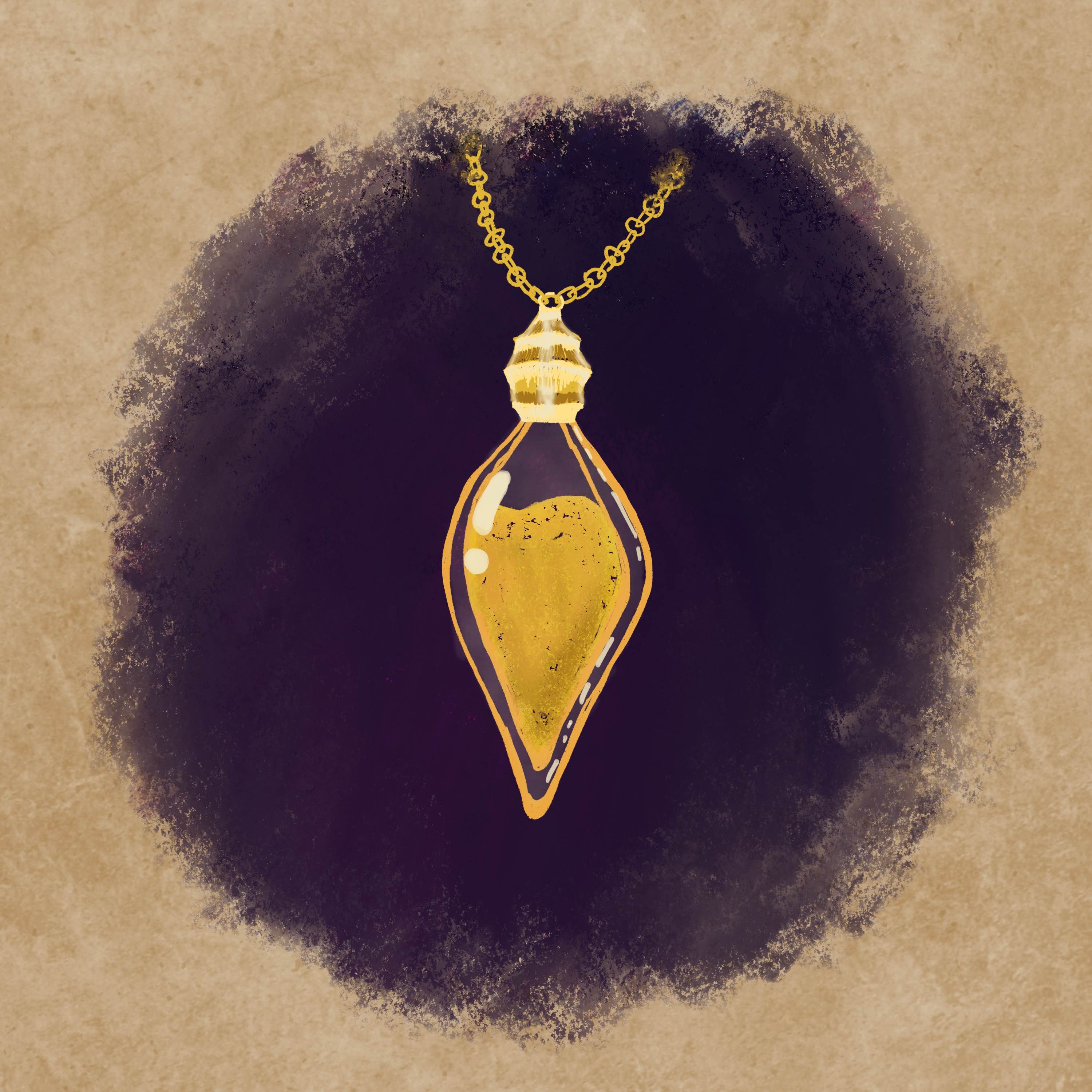This vial of golden sand is quite small and there is seemingly no way to open it. I am uncertain where the sand itself comes from. The sand inside of the vial is almost as if its made from gold the way that it shifts and shines. The vial is firmly attached to a golden chain that is magically able to re-size itself.