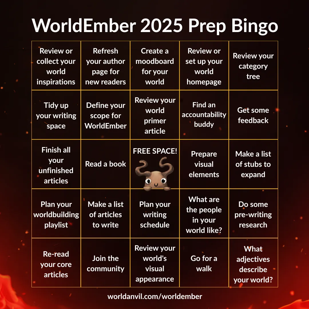 It's WorldEmber time again, and time to get prepped for the big push at the end of the year. But here's the thing - I live the #AlwaysWorldEmber lifestyle. I write every day. In a typical month, I beat the 25k goal - and that makes prepping for WorldEmber a little weird for me - because that's just how I'm going all the time. I do push a little harder during December - but the prep is always done, because I'm always there.
