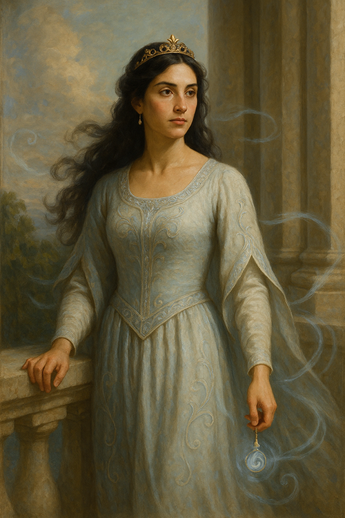 Chrysanthi Anemos, formally Crown Matriarch–Apparent and heir to the throne, represents Blacklam's nine-century matrilineal continuity. Raised in Ansdorf, she trains in Sonis ohmi, treaty protocol, and trade etiquette to prepare for ceremonial and civic duties. In public she reads as steady and composed, having more interest in order than dramatics. She is often seen alongside the Hands of Cultivation and Protection during forums and market-day appearances. Her Sonis ohmi is competent for palace rites, her airflow is crowd-safe, and she manages to keep weather etiquette to scale. Chrysanthi’s daily activities include hosting ceremonies, attending guild councils, and leading initiatives that link the Anemos legacy to modern governance. Chrysanthi embodies the realm’s two pillars of protecting Blacklam’s borders and maintaining stewardship at home.