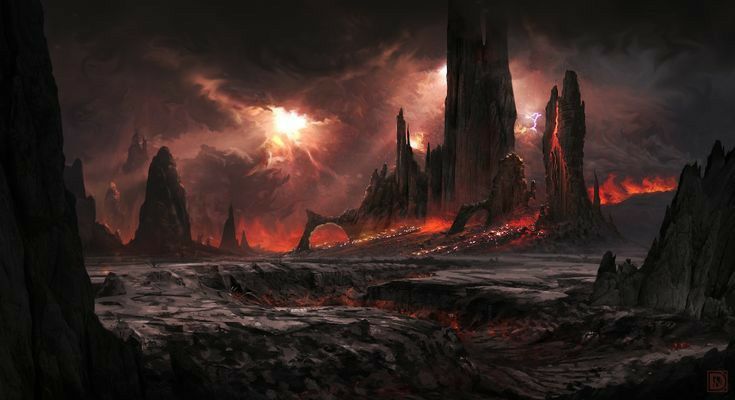 On a calm night camped on the rolling hills just south of Fort Enther, the party sleep after their hard travels as to regain their energy for the important days ahead, with Fasûl and Elräen on watch for any ambushes. Despite the peace of the autumnal air, a dark presence coalesces around the group. In their deep slumbers, Asguir and Fauna enter a strange dream-state as feelings of terror shroud them. Asguir awakes in a barren landscape with a sky of burnt crimson and mountainous caverns that seems to shift beneath his feet. His skin is seered by the firey air and smoke coats his lungs. Faces appear to him in the shadows of the basalt mountains: his parents, his king, fellow soldiers and friends from times long past. They whisper hurtful words of failure and torment, eventually repeating the same word in a torturous mantra - "dishonourable." He pushes through the manifesting memories surrounding him and climbs over a ridge in the charred rocks, looking down upon a deep crater with blackened brick pillars protruding from it. Infernal runes are carved into the rock and at their base is a massive altar of blood and fire with a symbol of a 4 clawed scrape etched into the darkened stone. Suddenly, robed figures converge at the altar, chanting in low voices and strange tongues. Fauna hears this chanting too, though she awakes in an abyss empty of life. She calls but no-one answers. She wanders the darkness realising she is alone, and as that chanting rises in her head - not heard as much as sensed - the walls of blackness close in on her. Both adventurers hear a calm, eloquent voice amidst the chaos, saying the words "Free me." As the voices grow louder the altar splits in front of Asguir with a bellowing crack and a creature rises from the depths below. First, its skeletal horns like towers of bone pierce the red sky, then its hands with claws the size of greatswords dig into the the altar and push the ground apart, forming a great chasm as wings of leathery flesh fan out from its back. Finally its head rises from the pit, a charred skull with a brutish jaw snapping shut into a wolf's grin. Where its eyes should be, there are instead two sets of 4 clawed gashes in its skeletal face. As this gargantuan creature rises, towering Asguir despite being hundreds of feet above the altar, both his and Fauna's heads scream as images sear into their minds: a staff emanating a strong arcane power; a cloaked figure being chased across the wilderness; and finally the face of this devil. The chants then switch from an ancient language to whispers of names and titles - "Avatar of Wrath. The Chained One. Devourer of Suns. Archdevil of The Seven Hells. The Son of Chaos. Rage Incarnate". The eloquent voice grows louder, laughing uproariously. The chorus settles on one last name - "Yolgaroth." As it echoes through Asguir and Fauna's heads, the facade of calmness falls away from the voice which suddenly screams in pure fury and hatred. "FREE ME."Act IV: "You're Out of Your Depth"