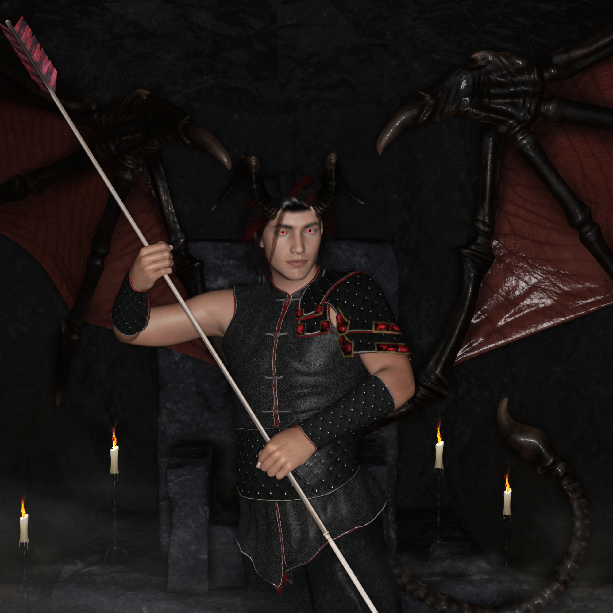 Dezmond is a Hybrid Dragon and was cast into an alternate dimension, mostly Valhalla, after being accused of killing his clan. He can strike another with his spiky tail, inserting venom into their body. He greets the high priestess as they journey throughout the elemental trials.