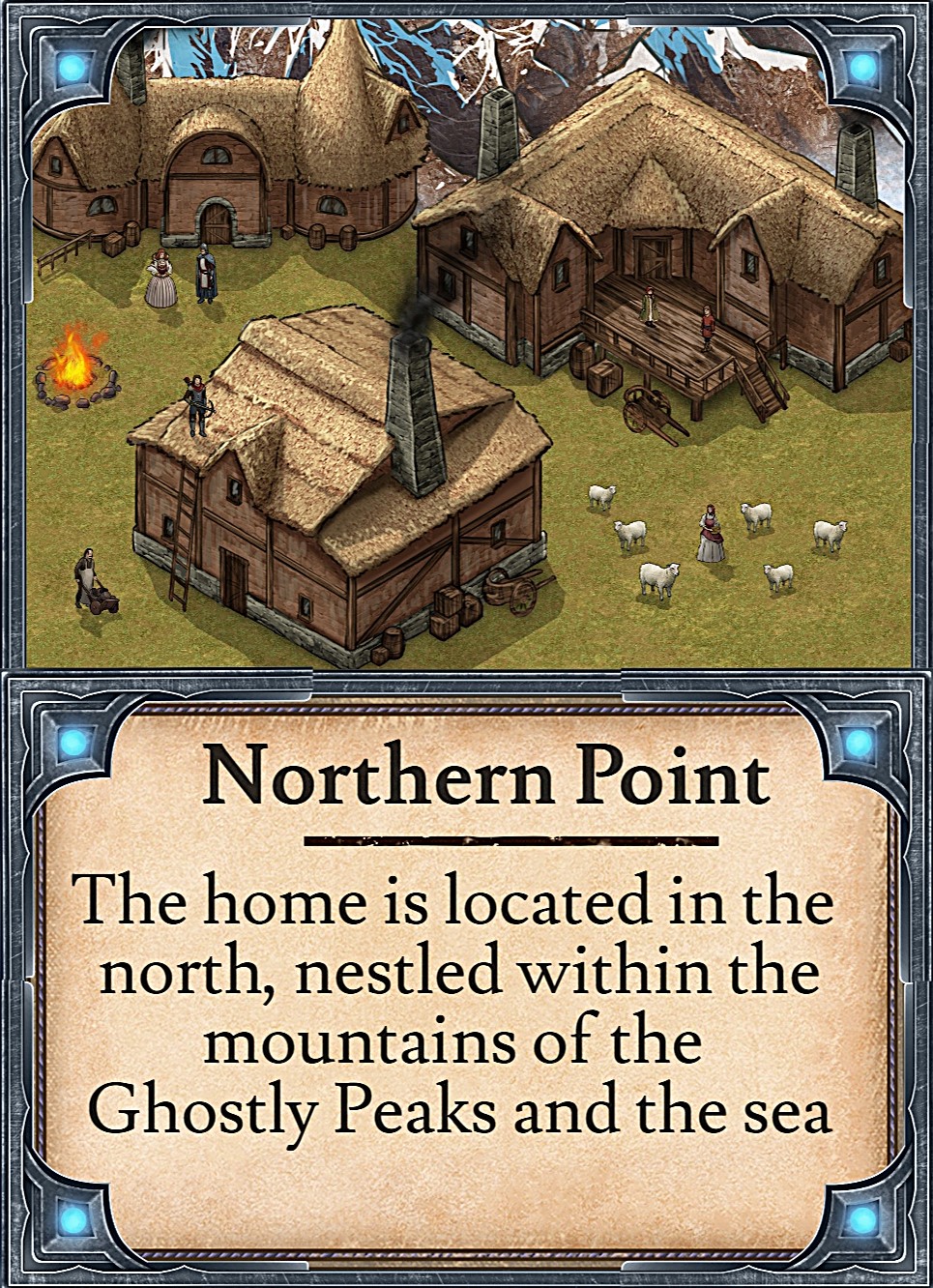 The home is located in the north, nestled within the mountains of the Ghostly Peaks, and on the edge of the sea.