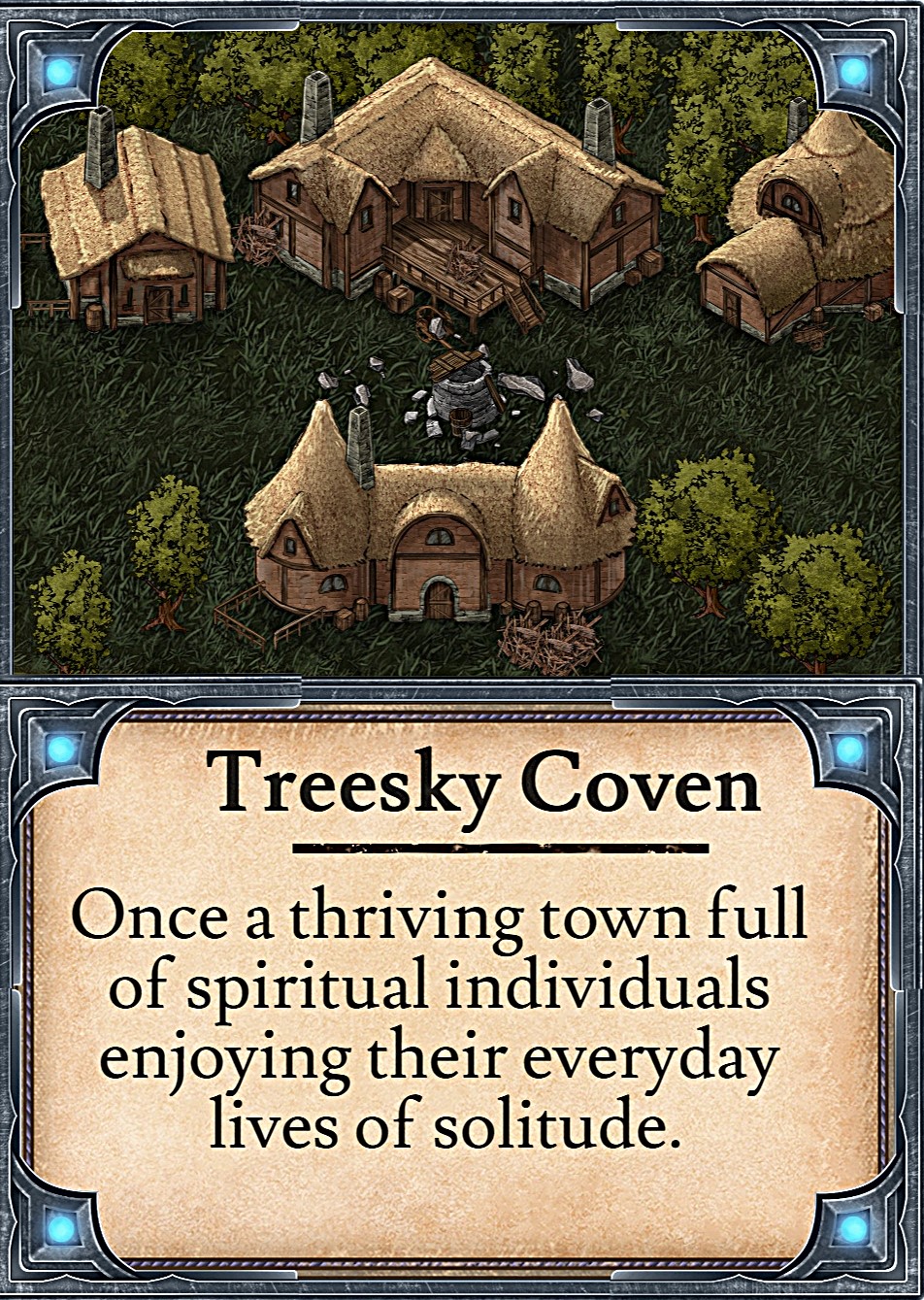 Tree Sky Coven was once a thriving town full of spiritual individuals enjoying their everyday lives of solitude. A city was full of humans, druids, and trolls. A few older druids survived the village’s destruction because they were at the monastery during the attack..
