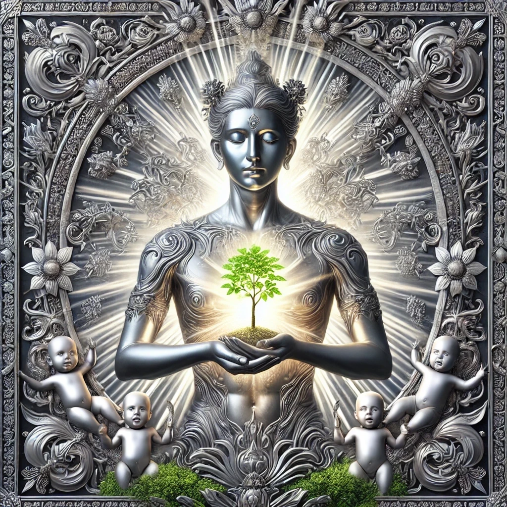 Lyserith's imagery include a silver medallion with a sapling and an angelic halo, a baby angel (this lesser deities representing innocence are considred to be Lyserith's wards and messengers) holding a growing sapling, fruits and radiant silver light.
