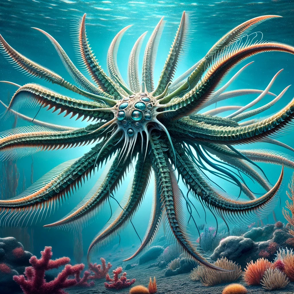 Their body plan follows a radial symmetry with six sides, each side having six segments and each segment boasting one limb, resulting in a total of 36 limbs. Their tail is a branching striker that splits into six parts, capable of delivering crushing damage. Out of their 36 limbs, 24 are used for manipulation, with one set of six limbs having high manual dexterity, making them adept at tool use and delicate tasks.