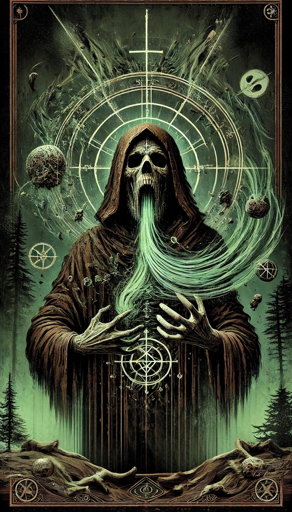 Practitioners of Myrkathian meditations chant the mantras to create intricate soundscapes and connect with their god. Some hope it will bring protection from ruin. A darker ceremony is ritual destruction of pines poisoned by special rites to symbolize the inevitability of loss. As the tree loses its needles, they are gathered, preserved, and later used in rites, poisons, and potions.