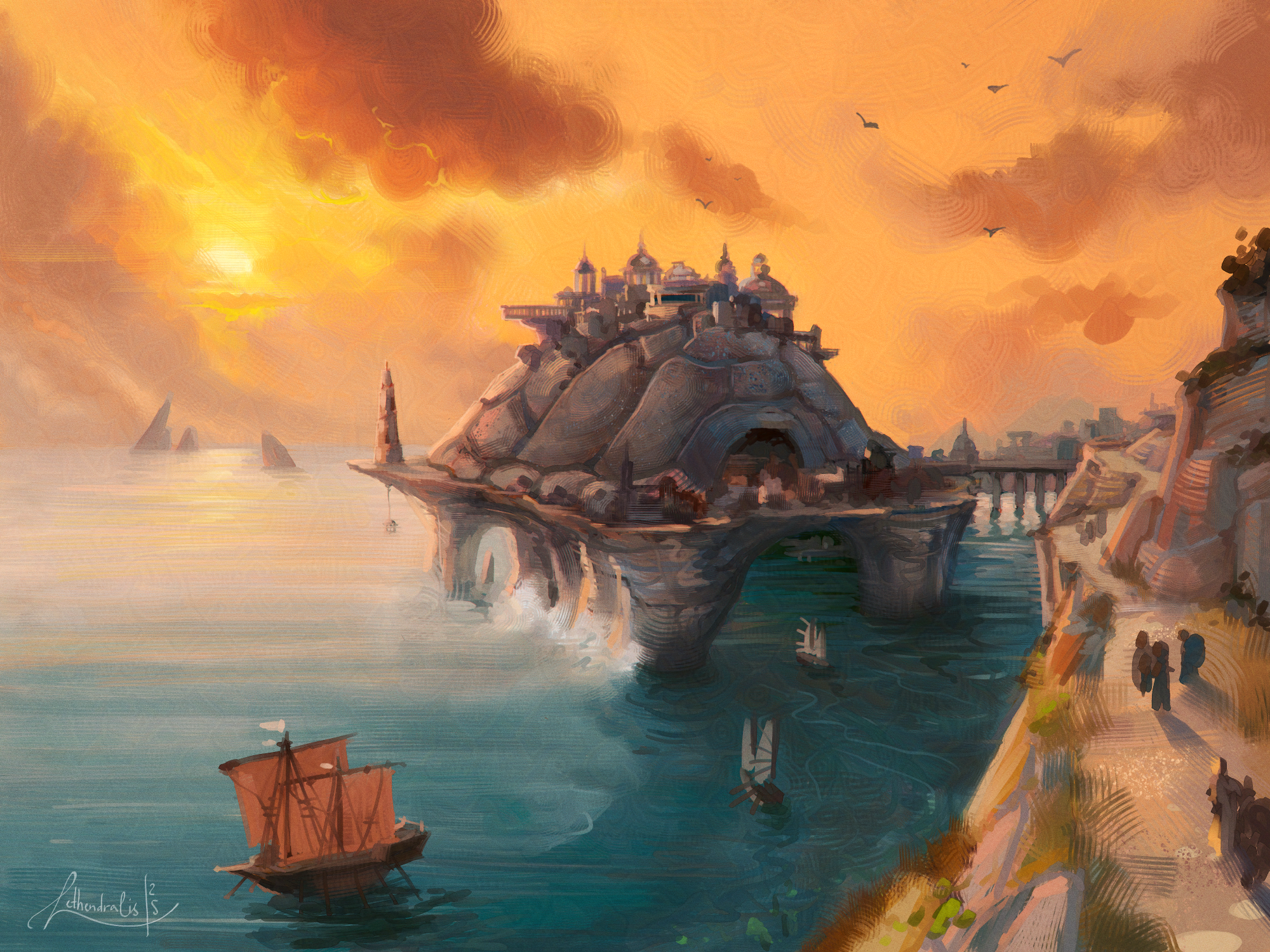 Built on the vast, turtle like, shell of a long dead titan of the deep; the capital city of Alondis sits off the east coast of The Realm of Alondaeri. She is home to The Alondaeri Circle, led by Ol’shan The Wise. The city is split into two districts, the Shelltop, the region built upon the shell, and the Undershell, everything that exists within the shell itself.