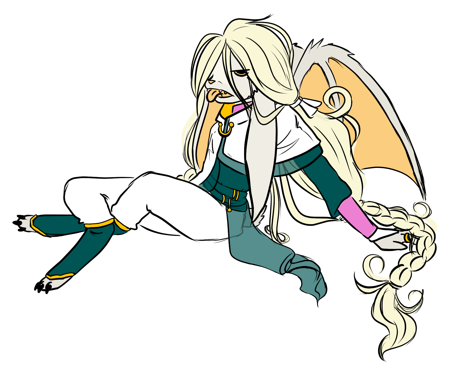 Irma was a pretty normal kid. He liked to collect bugs and play outside. He often got in trouble for being too curious and wondering too far away from town while out playing. When Irma was around age 5, he was found collapsed at the edge of town. Doctors couldn't seem to find out what the problem was, that is until his hair started growing incredibly fast right before their eyes. He had somehow gotten Cryolidhium poisoning. His family was very quick to get him treated and thanks to that he's alive today. His hair still seems to insist on being extremely long and grows extremely quickly if cut, until it reaches the length of him. Once at this length it simply stops. As far as mutations go it isn't a bad one. Its the effects that can't be seen that cause the problems. After he was cured he started acting strangely. He would go missing as normal, but would always be found in the memory garden staring at the filled flowers. When asked why his answer was a strange one, "They don't make me hungry." Worried about his new morbid hobby, his parents got him into as many extra events, sports, gatherings, and crafts as they could, hoping to find him something more interesting to pay attention to then dead people. This worked for a while though he would often complain that 'the life river' was too loud. When Irma was 10 he went to stay at a friend's house for a party. While everyone was asleep a Colossi somehow got inside the house and killed everyone except for Irma and his friend, Evlued. Or.. that's what everyone assumed when the boy's refused to speak of it. Ever since that day Irma has become sedentary and lazy, never getting interested or excited in anything. He doesn't enjoy dealing with people at all and always has a slight annoyed edge to him. The only person in his home town he'll bother messing with is Evlued, though only to harass him by throwing rocks.Now