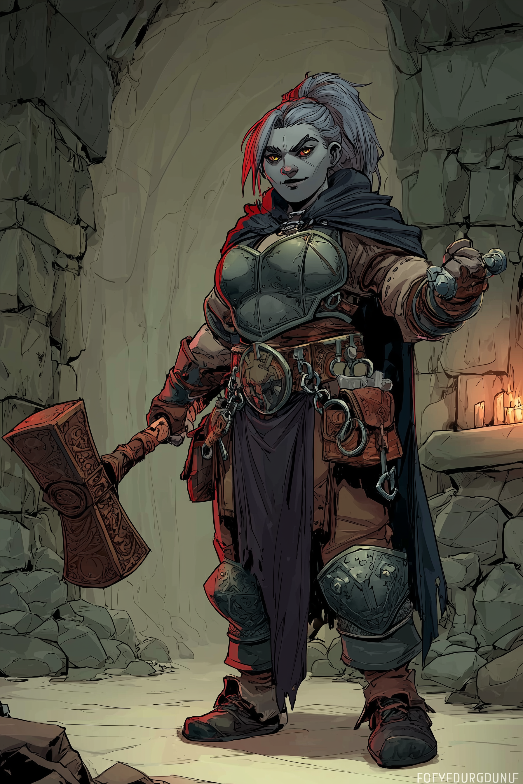 Errde, Capitana de los Guardianes de la Piedra del Krepost-na-Ozerey, es, como la mayoría de los duergar, practica y con una disciplina a toda prueba. Su voz suele ser respetada y obedecida, y se adivina un tono oscuro subyacente en su manera de hablar.