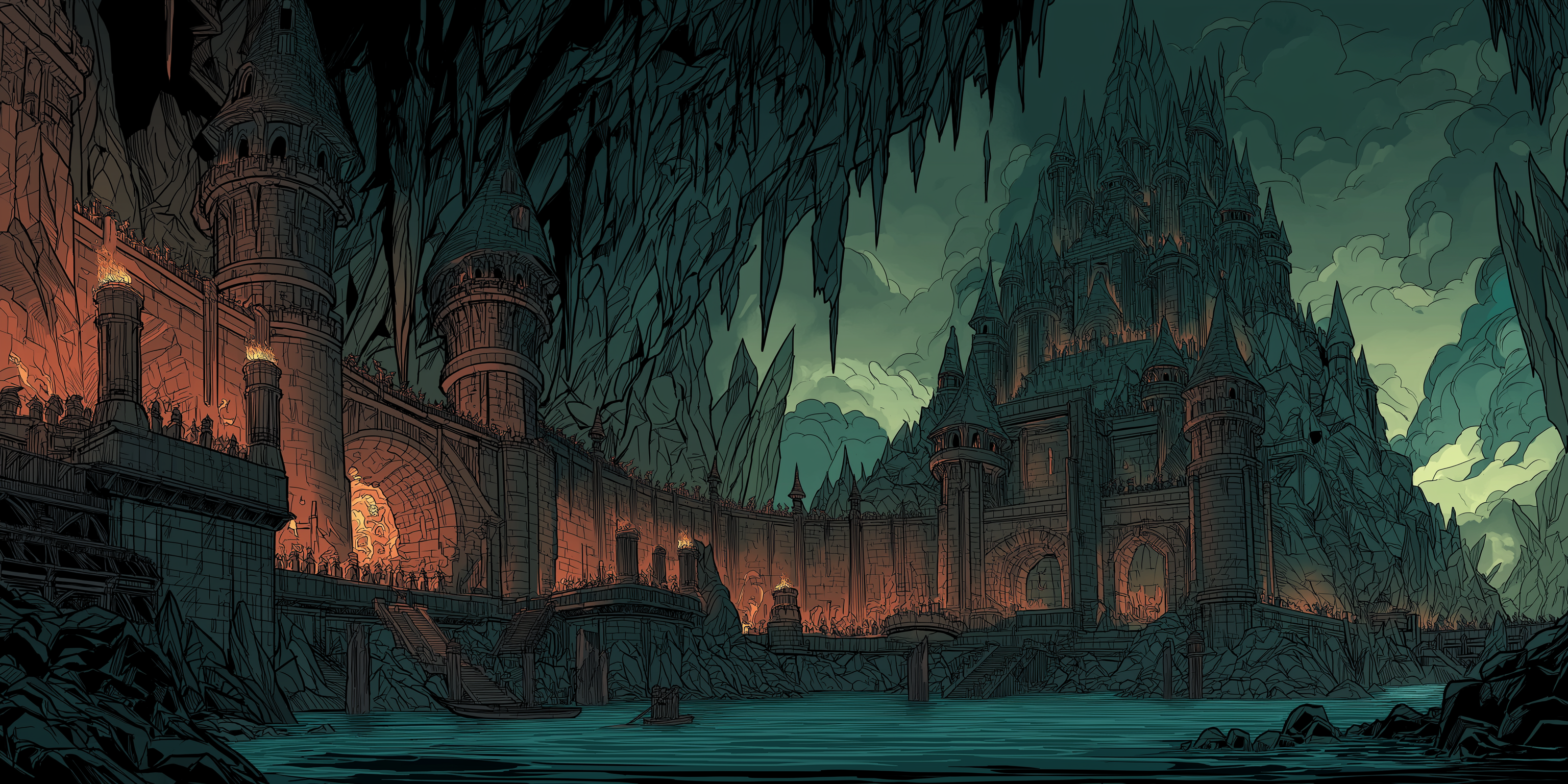 Conocido universalmente como Bastión de Sobrelago, es una fortaleza y templo tallado en el corazón de una enorme estalagmita junto al Llacfosc, el Lago Oscuro. Centro militar de Svartmie, y hogar de los Guardianes de la Piedra, numerosas chimeneas de forja la llena de brillo, y tiene decenas de plataformas con catapultas para atacar a posibles atacantes que lleguen vía marítima.