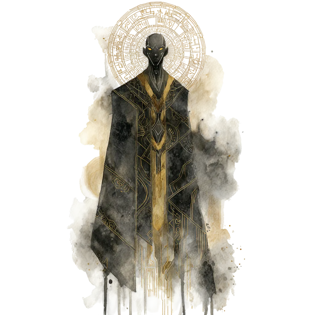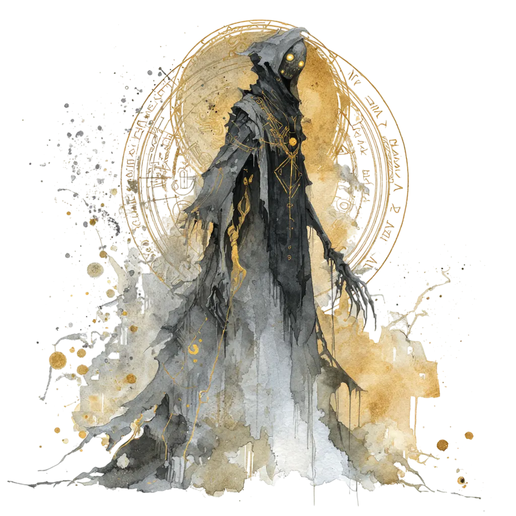 Their garments are woven from mist, memory, or threads of night itself. Some robes fall like thin fog layered over nothing; others resemble ink that flows with its own quiet purpose. Their footsteps never touch the ground. Shadows curl upward beneath them as if recognizing one of their own.