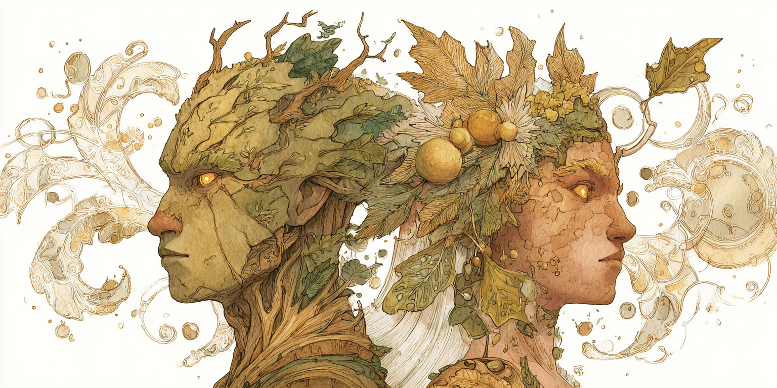 The Summerborn embody the season of fullness and fervor. Their leaf-hair grows deep and richly green, and their sun-warmed skin bears the gold of thriving fields. Strong-willed and steady, they excel in roles that demand endurance: hunters ranging far from home, vigilant guardians of sacred sites, protectors who meet hardship with unshaken resolve. Though more inclined to action than contemplation, their loyalty is as steadfast as the high summer sun.