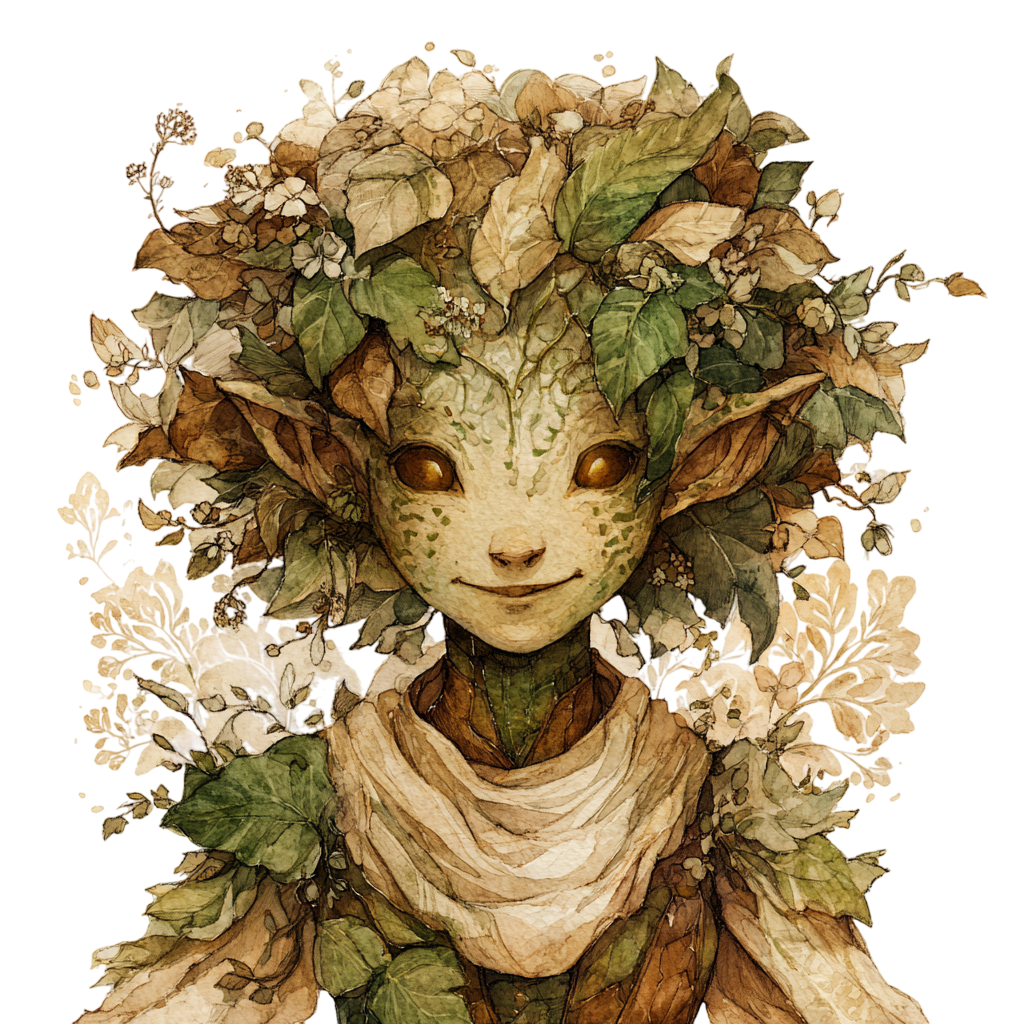 Springborn Terralyn carry the soft brightness of dawn in their leaf-hair, pale greens and budding hues that seem touched by early sunlight. Their skin is warm as fresh-turned soil, and their eyes gleam with restless curiosity. They are the nurturers of their people, quick to laugh, eager to mend, and drawn to all things yet unfinished. Herb-keepers, wandering scouts, and mediators often arise from this lineage, their presence bringing quiet optimism to hearth and grove alike.