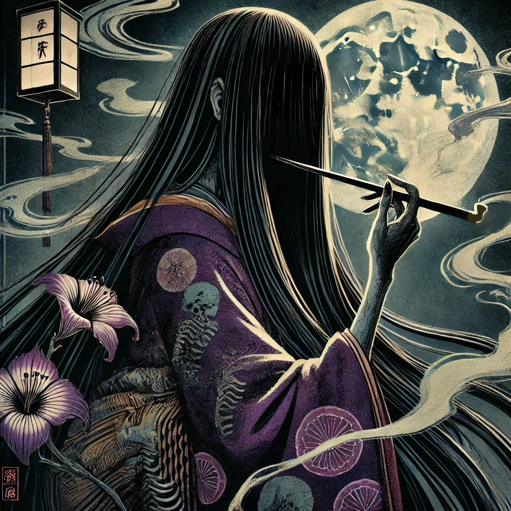 Multiattack. Sako makes 2 Hair Lash attacks and 1 Smoke Bolt. Hair Lash (melee reach 15 ft.) +8 to hit, 2d8 + 4 slashing damage. On hit: target must succeed DC 16 Str save or be grappled (escape DC 16) by razor hair. Sako may grapple up to 2 creatures. Smoke Bolt (ranged spell attack 90 ft.) +8 to hit, 2d10 necrotic damage. Hit creatures make DC 15 Con save or are Blinded until end of next turn. Smoke Wave (Recharge 5–6). A rolling surge of dark smoke erupts 30-ft cone. Dex save DC 16 or take 4d8 necrotic and be pushed 15 ft. On success, half damage, no push.