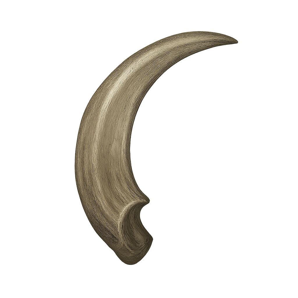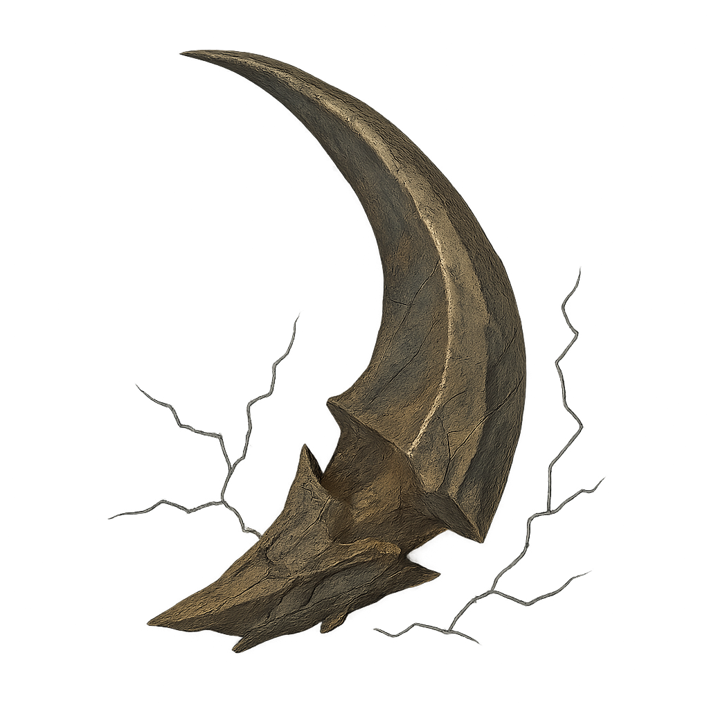 A curved, ivory talon with a faint metallic sheen, prized by hunters and alchemists alike for its razor edge and latent vitality.