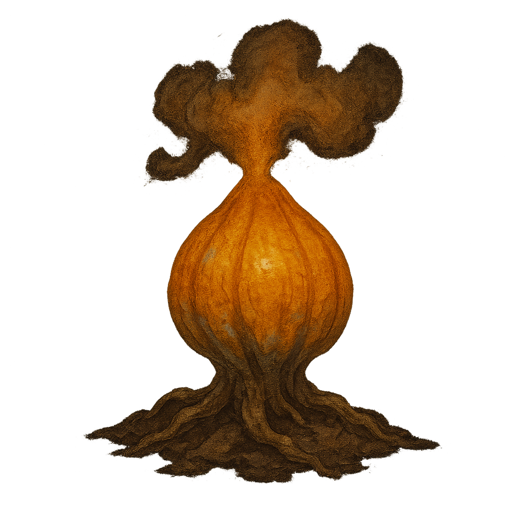 A swollen plant that grows beneath fallen metal beams, glowing faintly orange. When pierced, it releases a warm vapor that can rapidly rot organic matter.
