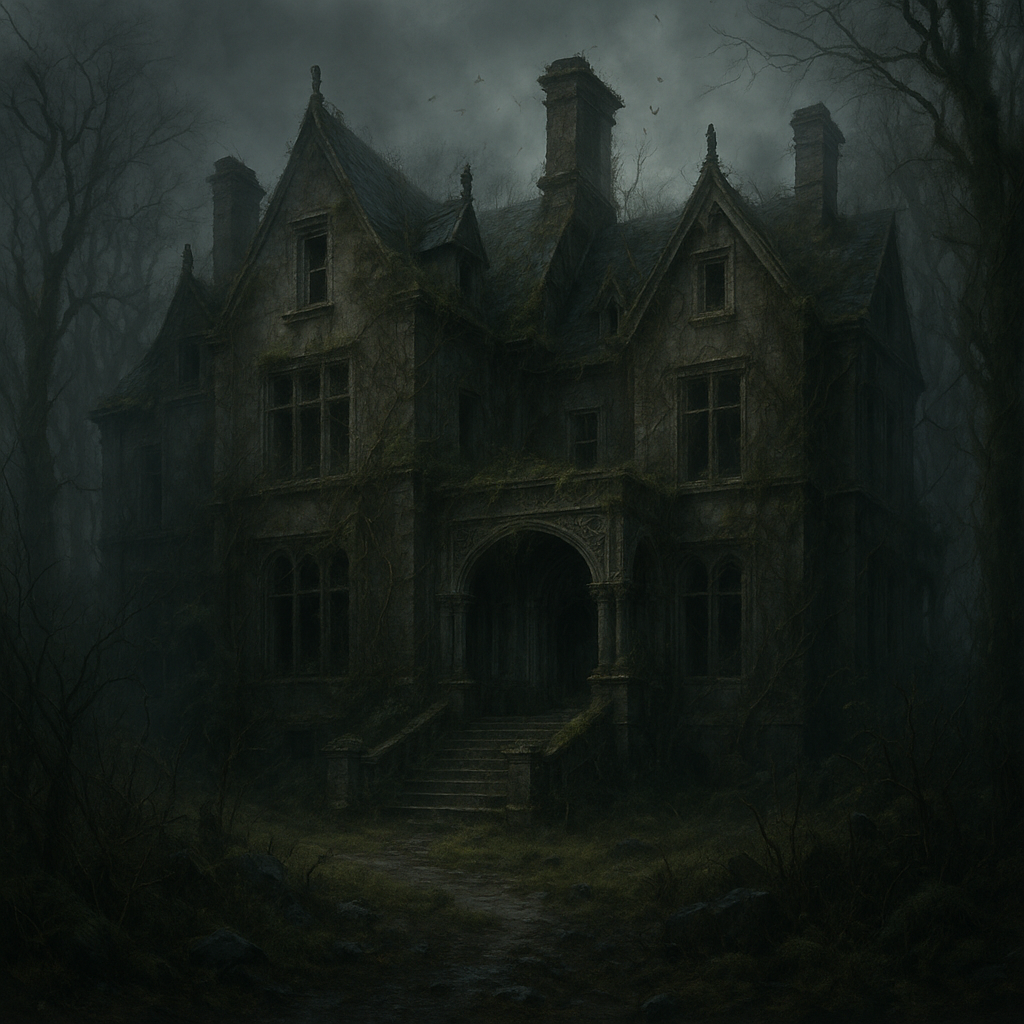Dunshade Manor stands like a rotting wound at the heart of the Dunshade Moor, a blackened silhouette wreathed in perpetual mist. Once the estate of Lord Dunshade — the infamous vampire whose name has become synonymous with cruelty in Therengian folklore — the manor has long since been reduced to ruin. Its crumbling towers and collapsed wings are strangled by thorny briars, its windows gape like eyeless sockets, and the surrounding air carries the heavy stillness of a place that remembers too much.