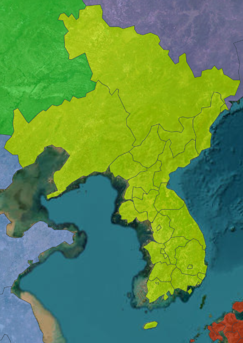 Korea became implicit with Japanese conditions during the Great War. Korea became an invasion point on the Japanese to Russian Manchuria. The Korean military fought the Russians and many Chinese warlord parties in mainland China, helping to secure the Laiodong Penninsula from Russia and capturing the railway in which Russia relied on to reinforce their army. Though Japan and Korea were successful in their theater of the Great War, their allies were defeated elsewhere, and came under international pressure to sign a white peace. During the treaty conditions, Korea regained much of their autonomy, and Japan was forbidden from annexing any further territory in Asia. However, as a measure to tie Japanese and Korean interests, Prime Imperial Yeong was married to Japanese Princess Masako in 1920.