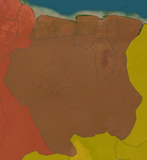 The Kingdom of Suriname is a nation within South America, bordering the Empire of Brazil and Gran Colombia.